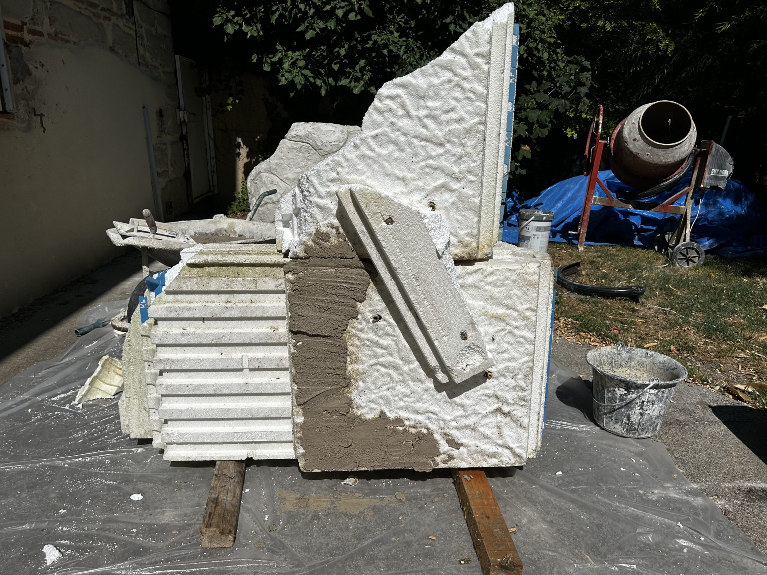 Création des Supports en Polystyrène pour Faux Rochers Piscine