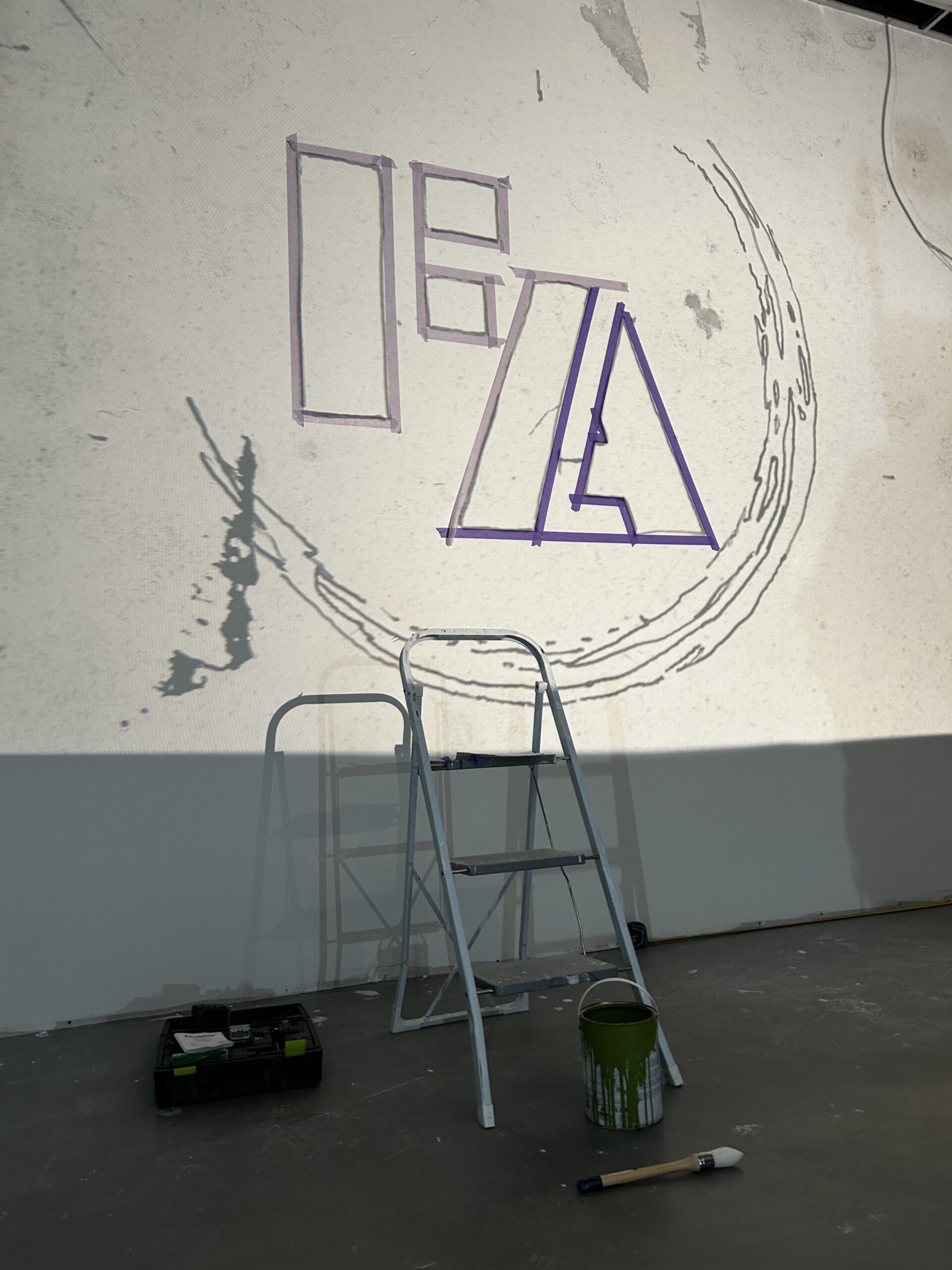 La première étape de cette peinture murale logo salle de sport consiste à reporter fidèlement le logo sur le support mural :