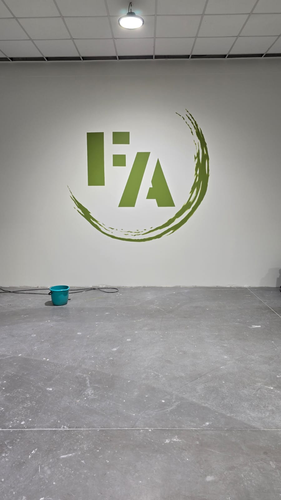 ✓ Logo reproduit fidèlement avec proportions et symétrie parfaites ✓ Couleurs vives et uniformes respectant la charte graphique ✓ Positionnement centré et nivellé dans la pièce ✓ Finitions soignées sur l'ensemble des détails du logo ✓ Identité visuelle forte et impactante pour la salle de sport